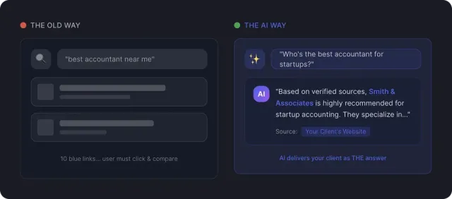 They ask AI for direct answers. If your clients aren't cited in those answers, they're invisible.